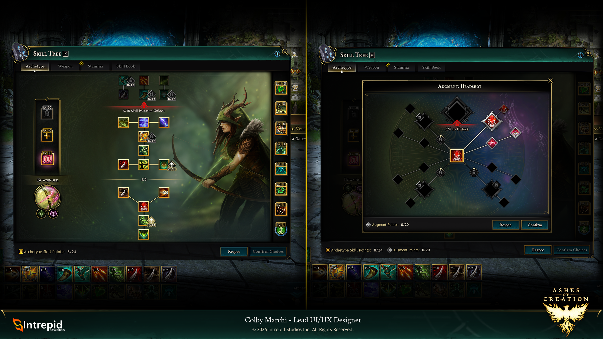 These menus managed and displayed the effects of items within Ashes of Creation. Dynamic templates to manage tooltips, comparisons, equipment slots, and player stats display.